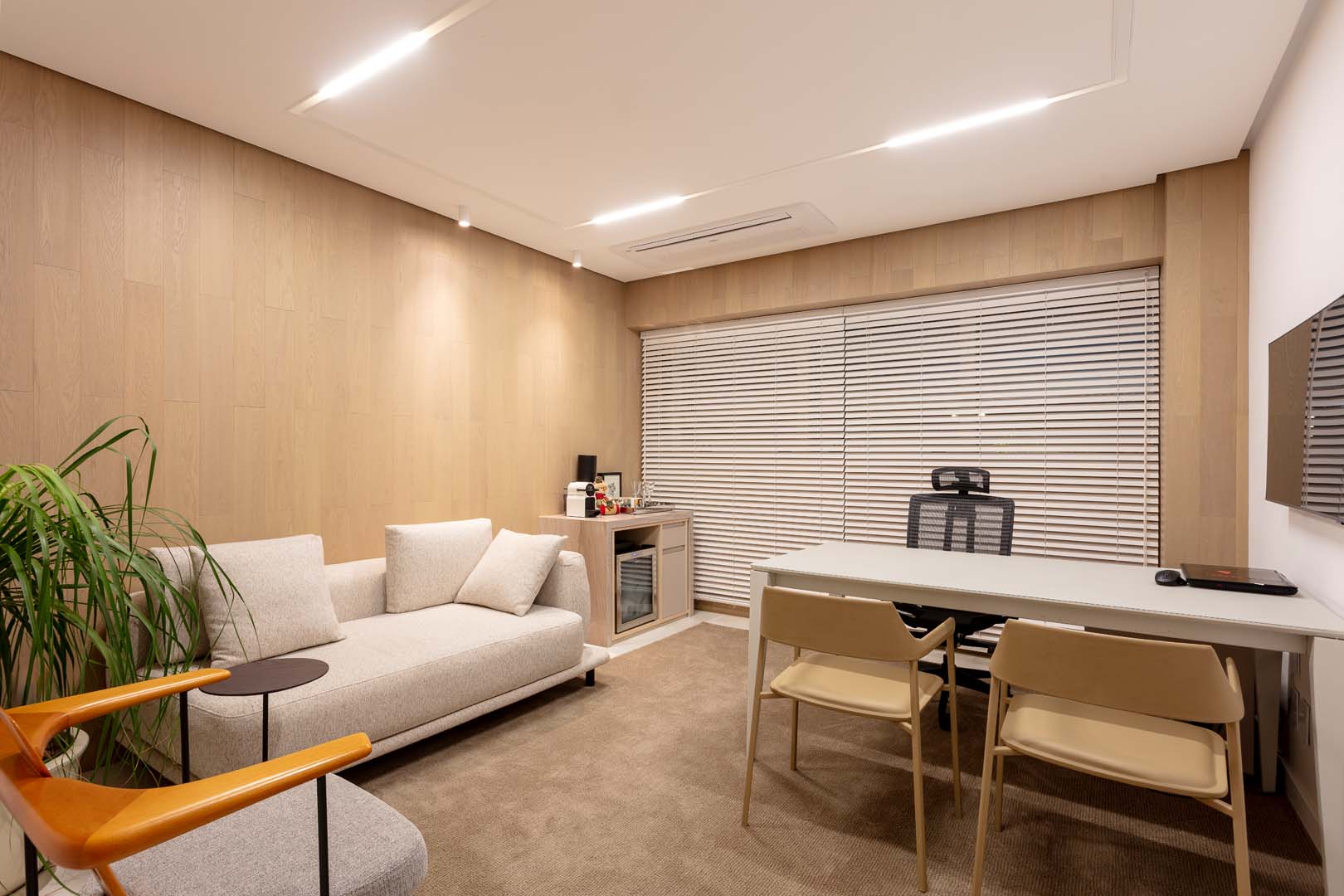A mudança da clínica, antes em uma casa, para um edifício comercial exigiu sensibilidade, para tentar preservar a sensação de acolhimento dentro de um ambiente corporativo. Rogério Menezes equilibra linguagem contemporânea e a atmosfera doméstica de um lar, criando percursos fluidos, escala confortável e uma recepção que convida à permanência.